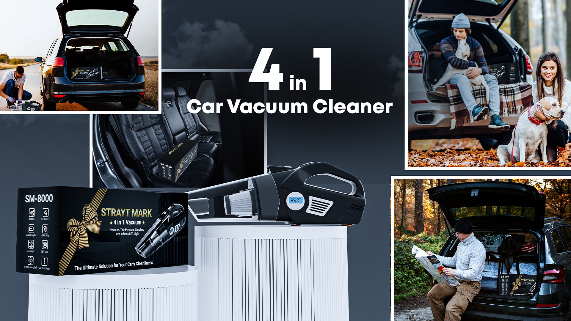 Welcome to Strayt Mark, where we bring you high-performance, reliable tools to keep your vehicles in pristine condition. Founded on a passion for quality and convenience, we believe that everyone should have access to innovative, easy-to-use car care solutions that elevate the everyday driving experience. With our 4-in-1 Portable Car Vacuum Cleaner, we combine essential features in one compact device, making it the perfect car companion for both quick touch-ups and deep cleans.